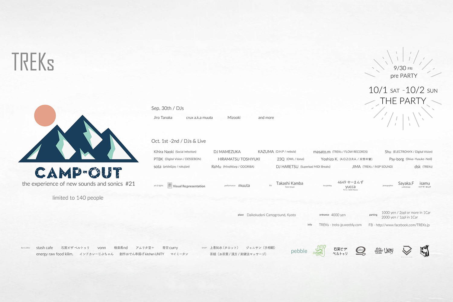 A-bar / Cosmic Capsule Happy Hour / 別世界 / 稲穂食堂 / KWC / カレー屋クスン / DancingWith / SQUIRREL NEST COFFEE / BEST BALANCE DRINK / foothills works / はおんヒーリング / Fingal / たっとぶ-tattobu- / yuki.n / KAYA / nomanoma