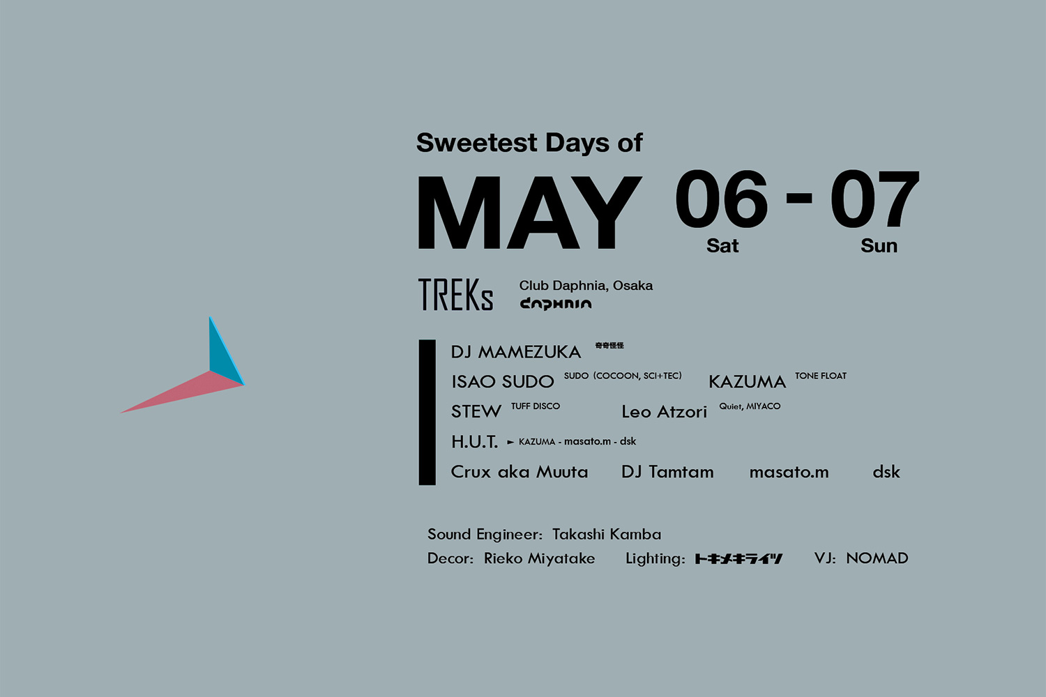 DJ PENA (FLOW RECORDS / Lisbon) / masato.m (FLOW RECORDS / TREKs) / ISAO SUDO (SCI+TEC / Berlin) / dsk (TREKs) / KAZUMA (D.H.P / nebura / Kyoto)
