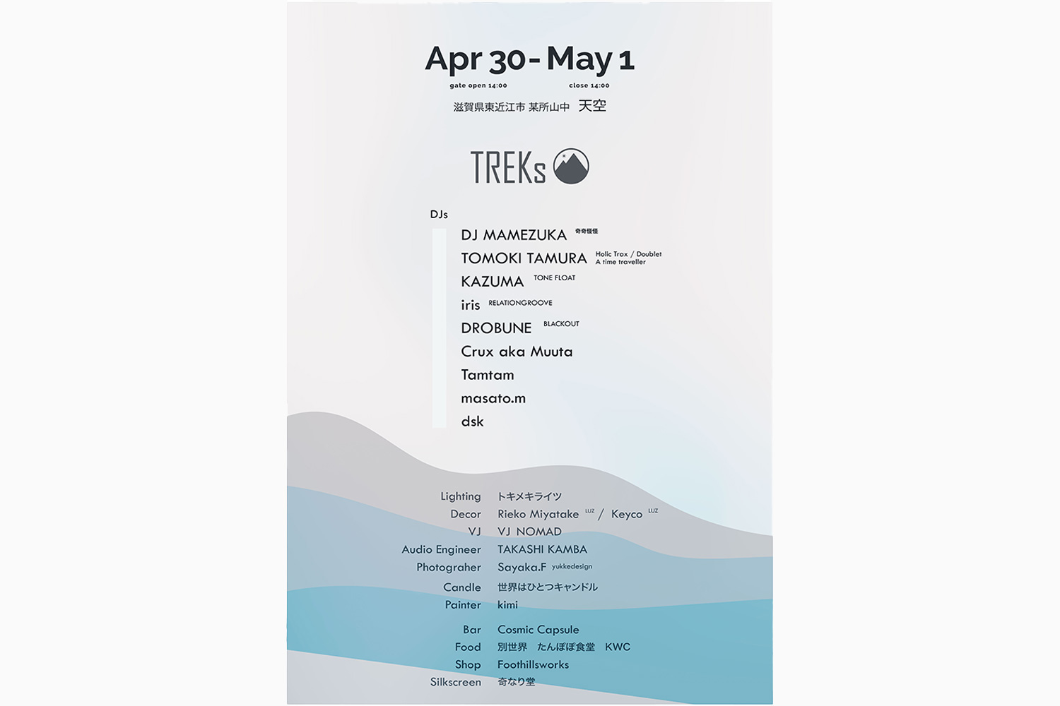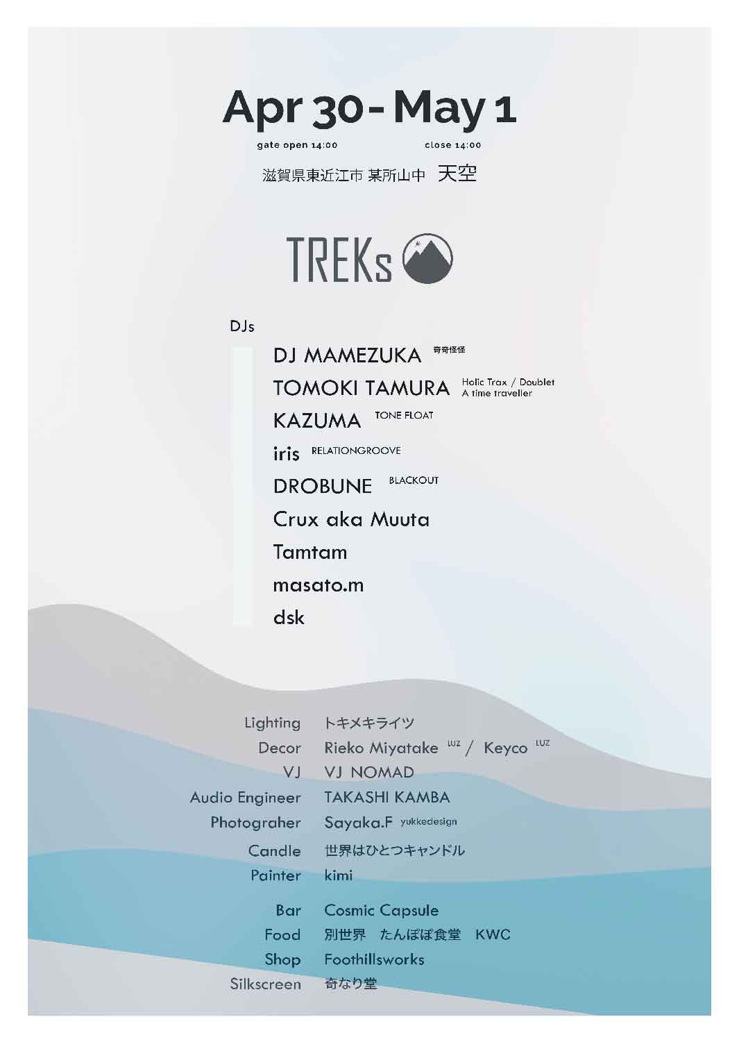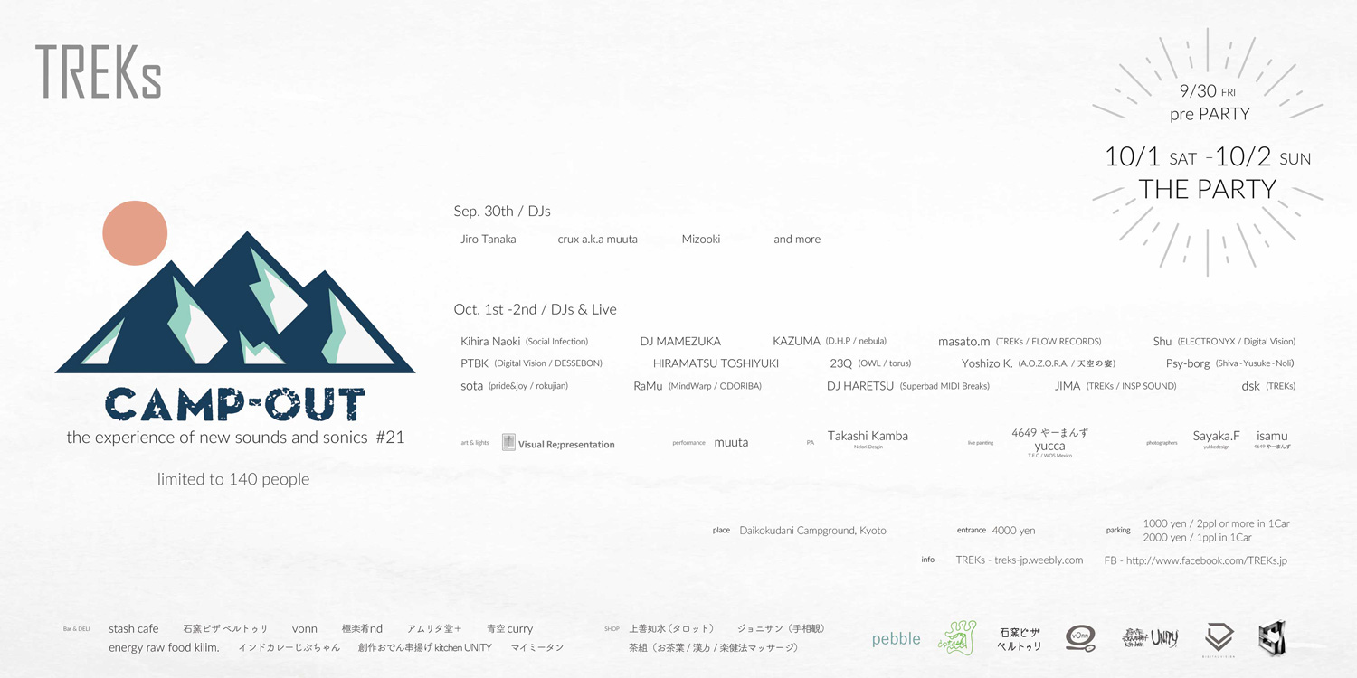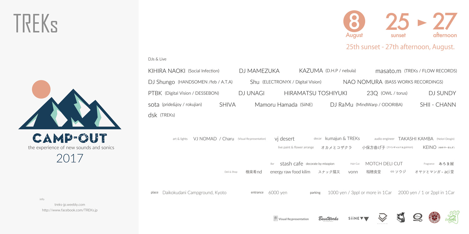 KIHIRA NAOKI (SOCIAL INFECTION) / DJ MAMEZUKA (奇奇怪怪) / KAZUMA (TONE FLOAT) / DJ HI-C (Moment) / TOMY / Gizmo / Hammock / Crux aka Muuta / Tamtam (TREKs) / masato.m (FLOW RECORDS / TREKs) / dsk (TREKs)