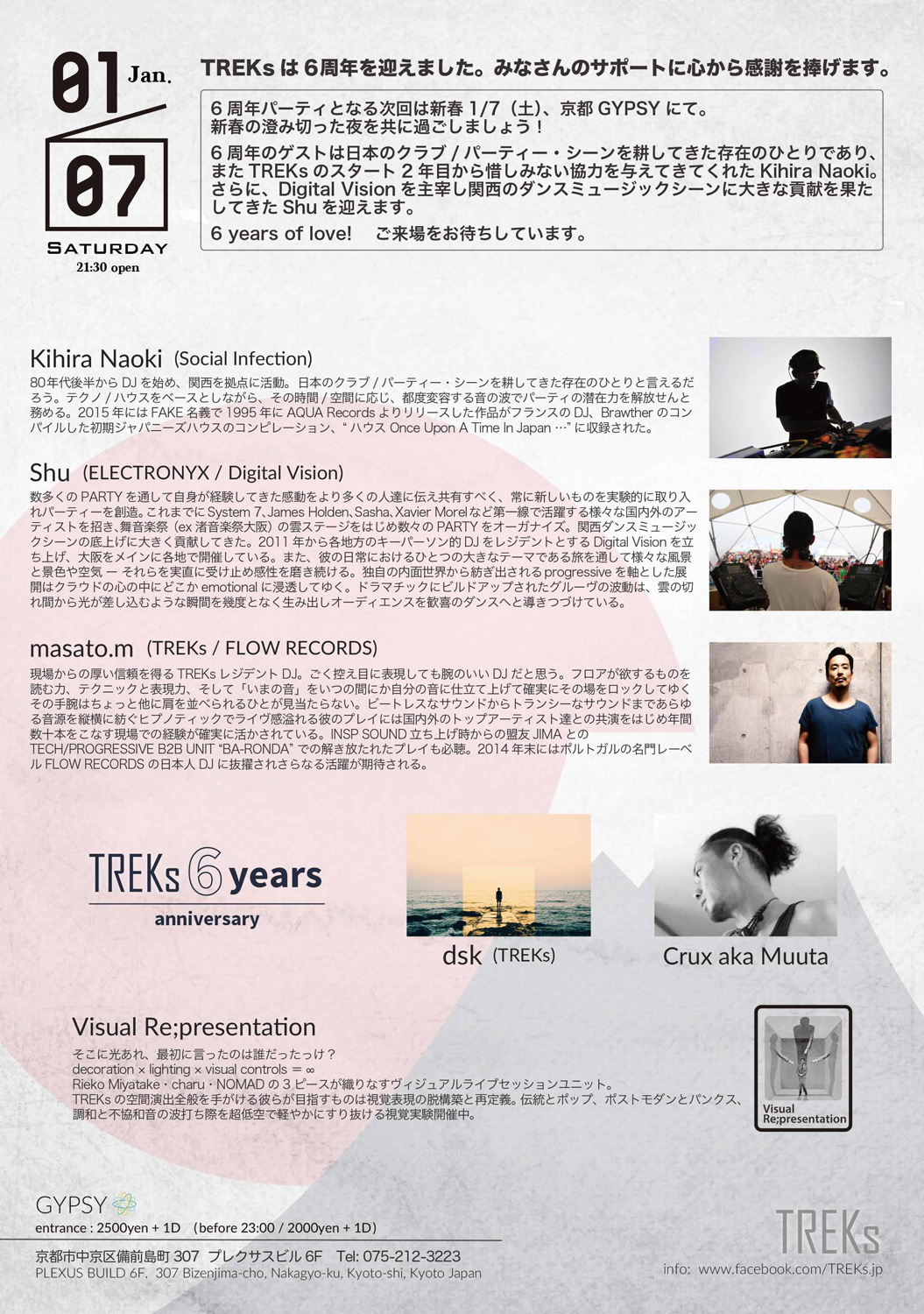 Kihira Naoki (SOCIAL INFECTION) / Shu (ELECTRONYX / DIGITAL VISION) / masato.m (FLOW RECORDS / TREKs) / dsk (TREKs) /Crux aka Muuta (TREKs)
