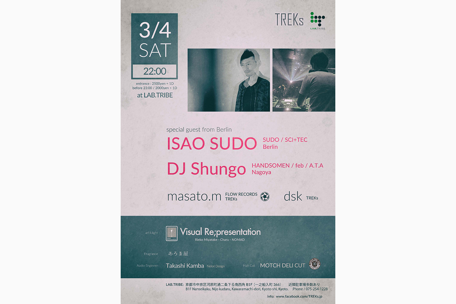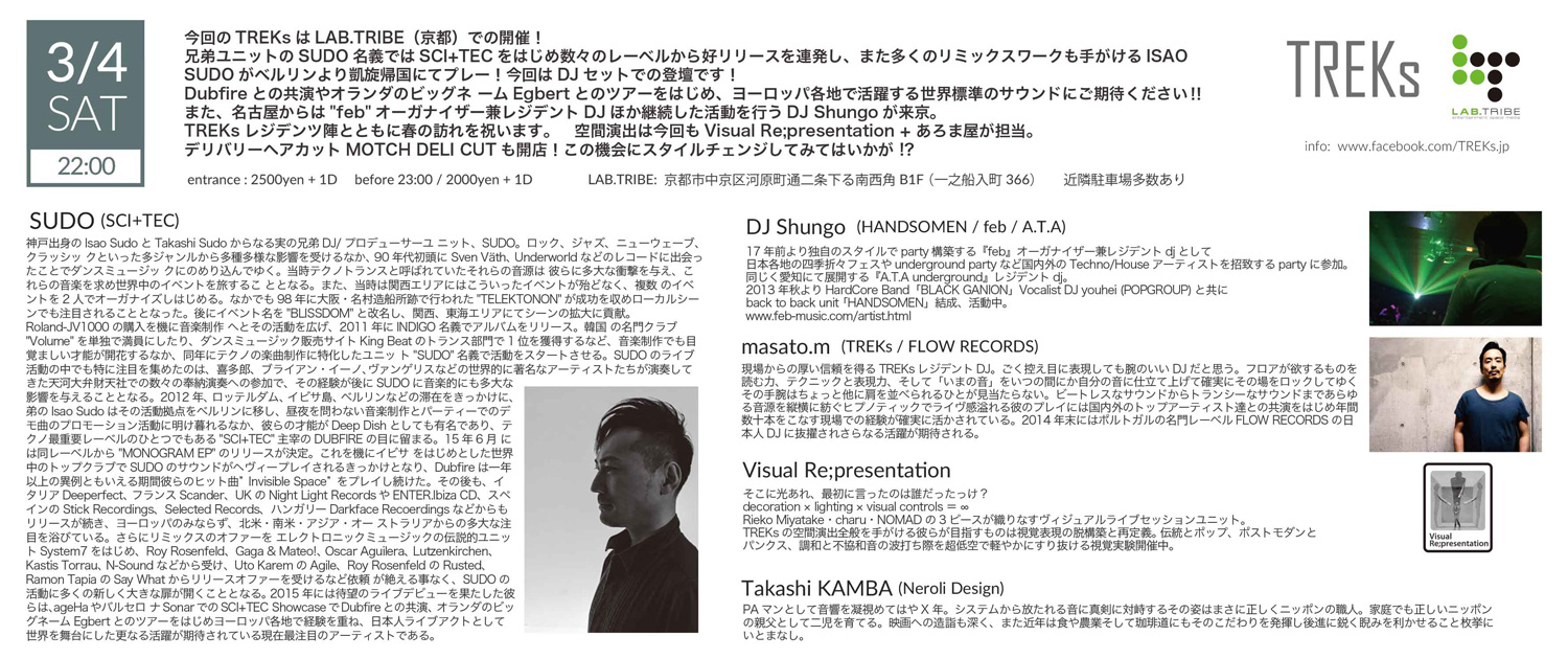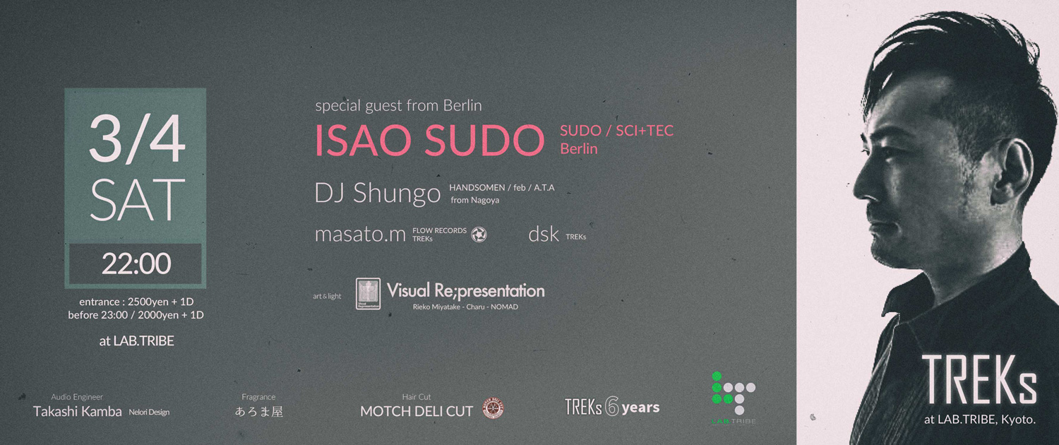 ISAO SUDO (SUDO / SCI+TEC) / DJ Shungo (HANDSOMEN / feb / A.T.A) / masato.m (FLOW RECORDS / TREKs) / dsk (TREKs)
