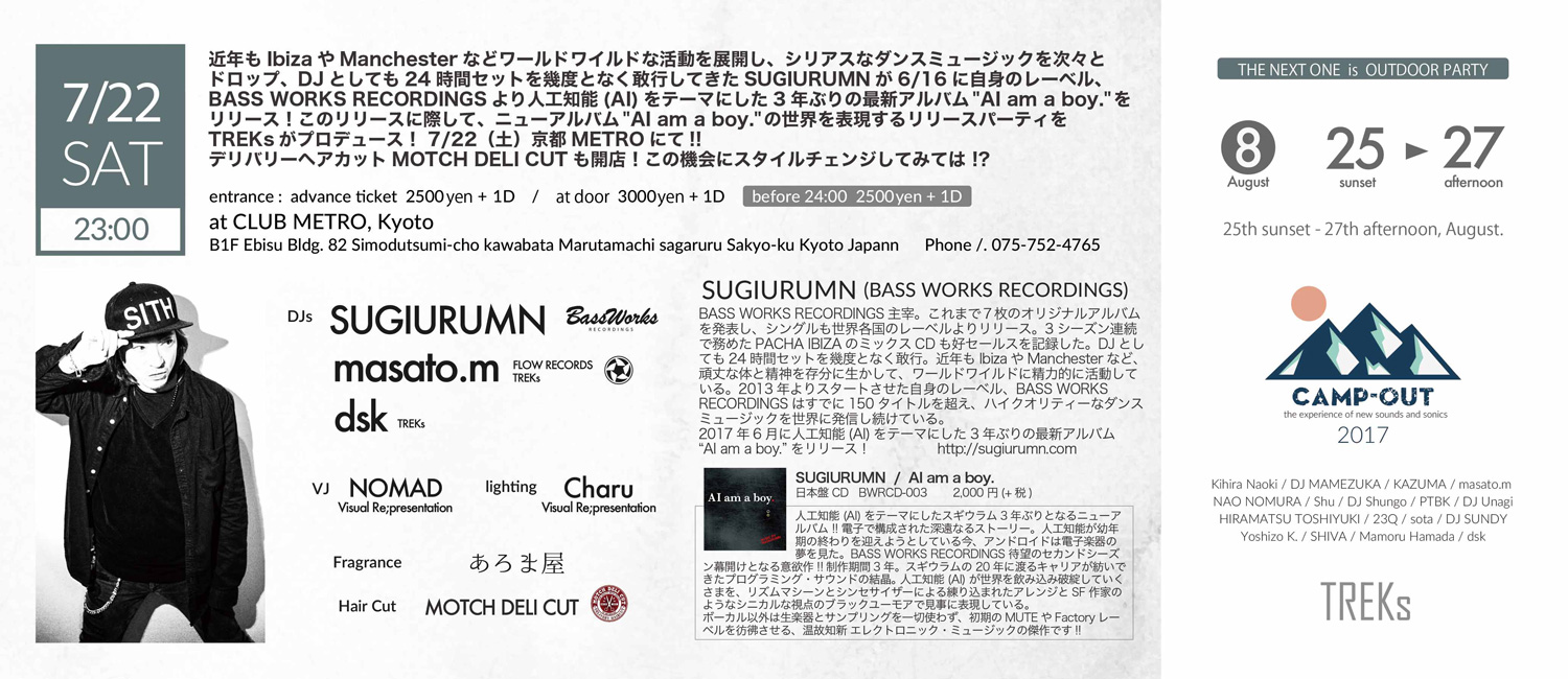 SUGIURUMN (BASS WORKS RECORDINGS) / masato.m (FLOW RECORDS / TREKs) / dsk (TREKs)