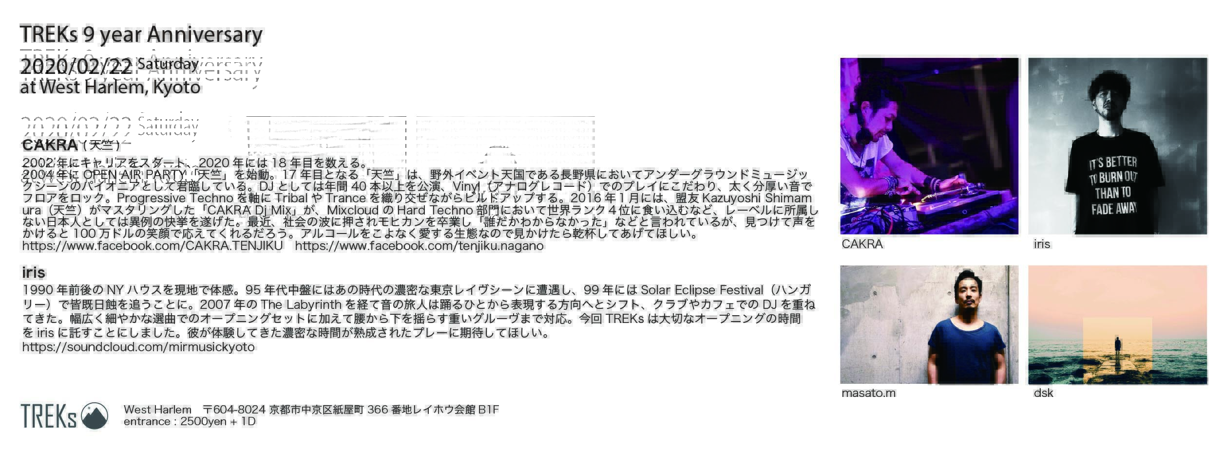 CAKRA (天竺) / iris / masato.m (TREKs / FLOW RECORDS) / dsk (TREKs)